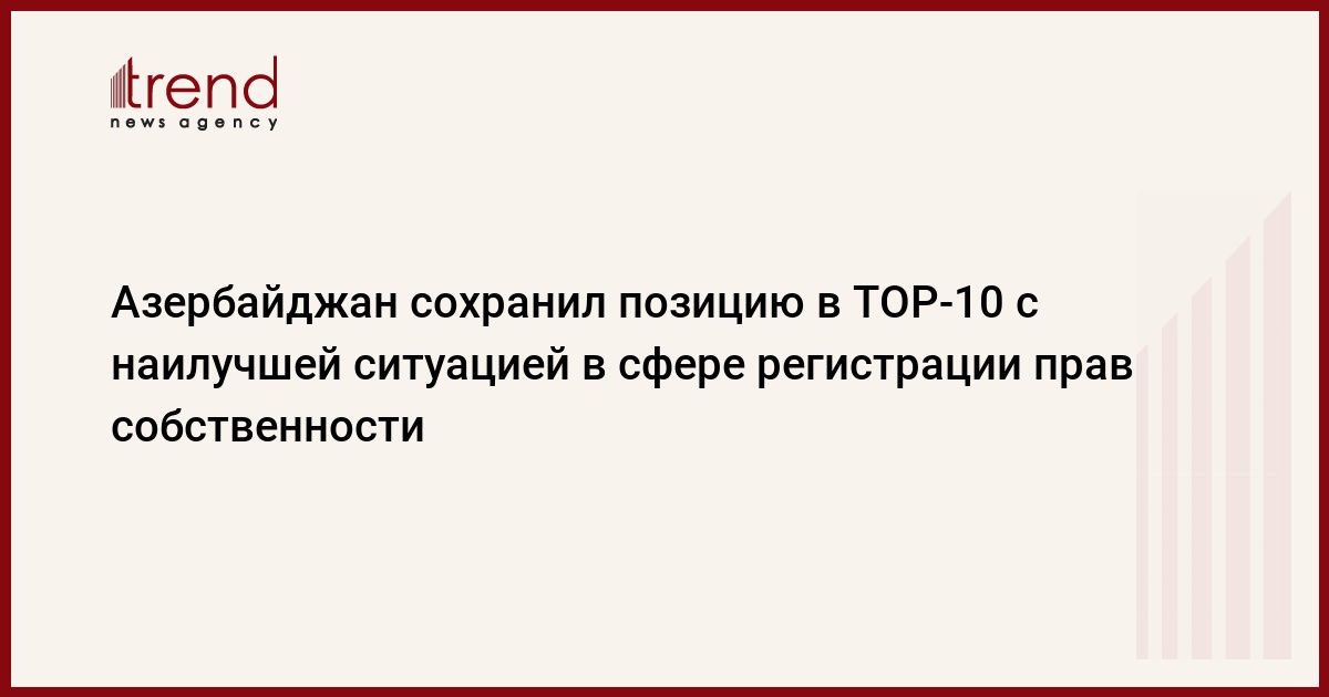 Азербайджан сохранил свое место в десятке стран с наилучшей ситуацией в сфере регистрации прав собственности в ежегодном рейтинге Doing Business - 2013 Всемирного банка (ВБ) и Международной финансовой корпорации (IFC).