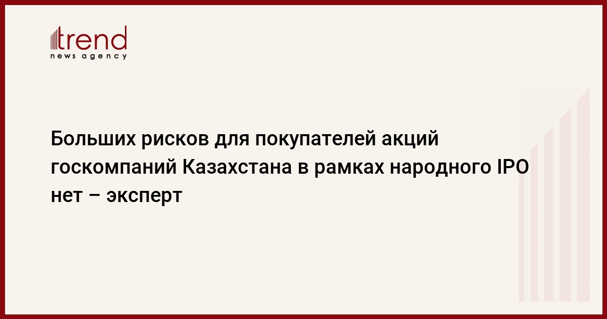 Больших рисков для покупателей акций госкомпаний Казахстана в рамках программы "Народное IPO" нет, считает специалист аналитического центра АО "Асыл-Инвест" Айвар Байкенов.