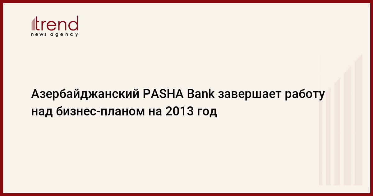 Азербайджанский PASHA Bank завершает работу над бизнес-планом на 2013 год, сообщил Trend во вторник председатель правления банка Фарид Ахундов.