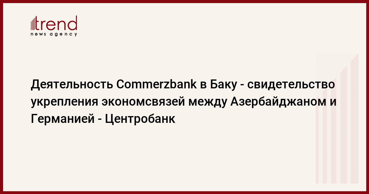 Деятельность представительства немецкого Commerzbank в Баку является свидетельством укрепления экономических связей между Азербайджаном и Германией, заявил генеральный директор Центрального банка Азербайджана (ЦБА) Рашад Оруджев на мероприятии, посвященном пятилетию работы азербайджанского представительства Commerzbank.