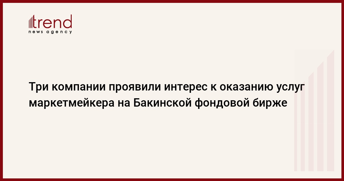 Для оказания услуг маркетмейкера на Бакинской фондовой бирже (БФБ) на сегодня проявили интерес три организации, сказал журналистам в пятницу заместитель председателя правления биржи Вугар Намазов. Первого официального маркетмейкера на бирже ожидают до конца года.