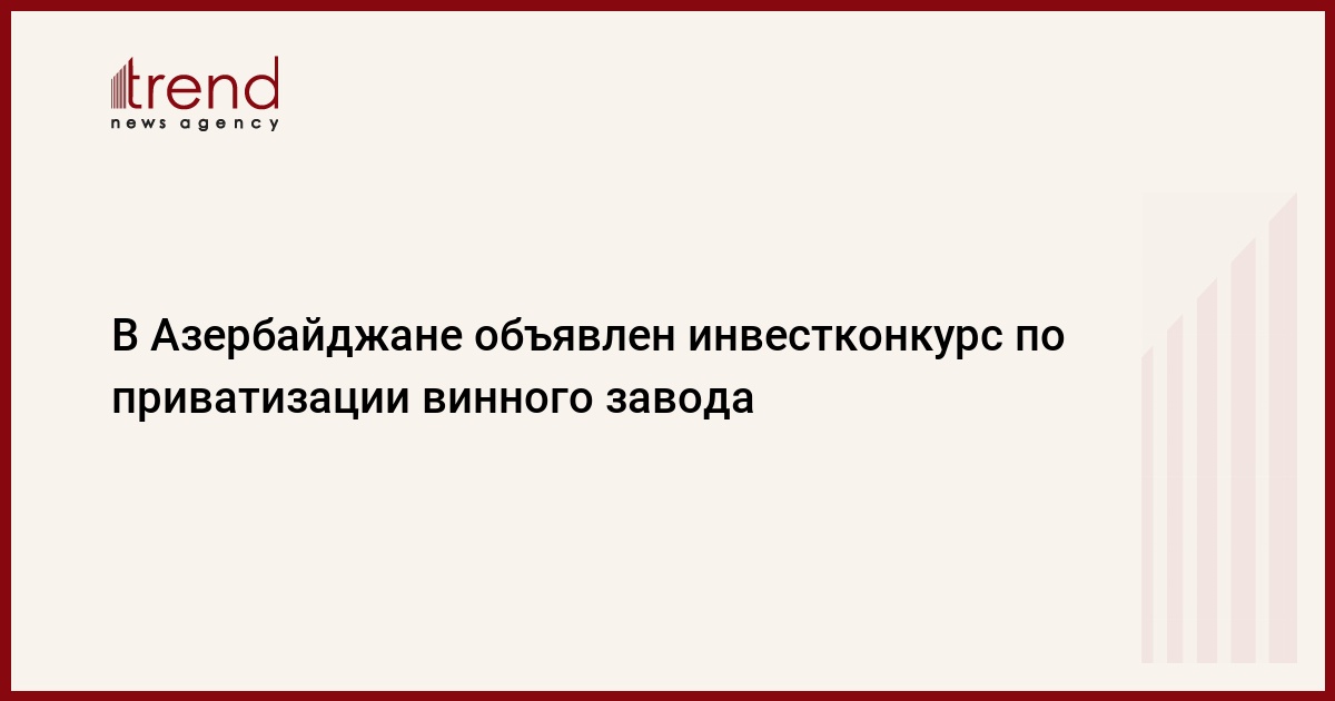 Государственный комитет по вопросам имущества Азербайджана объявил инвестиционный конкурс по продаже 98,4 процента акций ОАО "Oğuz Şərab", говорится в сообщении, опубликованном в субботу в газете Mulkiyyet, издаваемой ведомством.