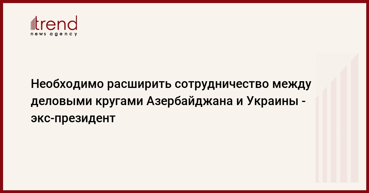 По его словам, политические отношения между двумя странами находятся на высоком уровне. "Мы могли бы расширить торговые связи, сотрудничество в сфере переработки. Украина имеет возможности обеспечивать Азербайджан продукцией машиностроения, аграрной техникой. На этой основе возможно улучшение торгово-экономических отношений", - сказал экс-президент.