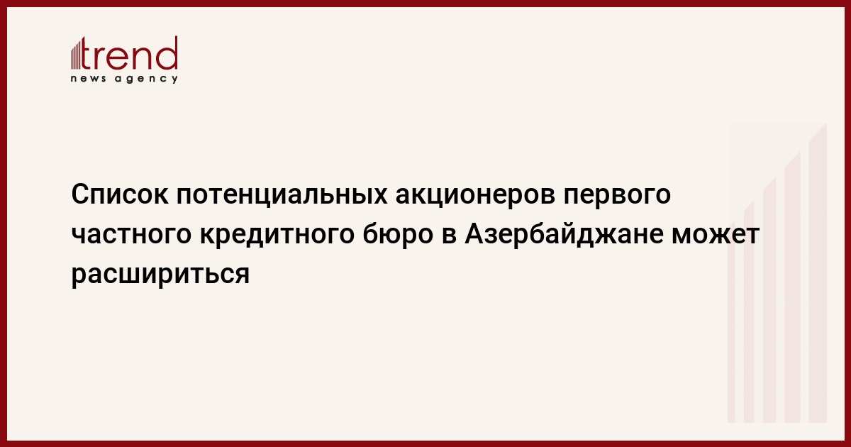 Еще два банка изъявили желание подключиться к списку потенциальных акционеров первого частного кредитного бюро, создание которого предусматривается в Азербайджане, сказал Trend в пятницу координатор проекта IFC по укреплению финансовой инфраструктуры в Центральной Азии и Азербайджане Теймур Эйбатов.