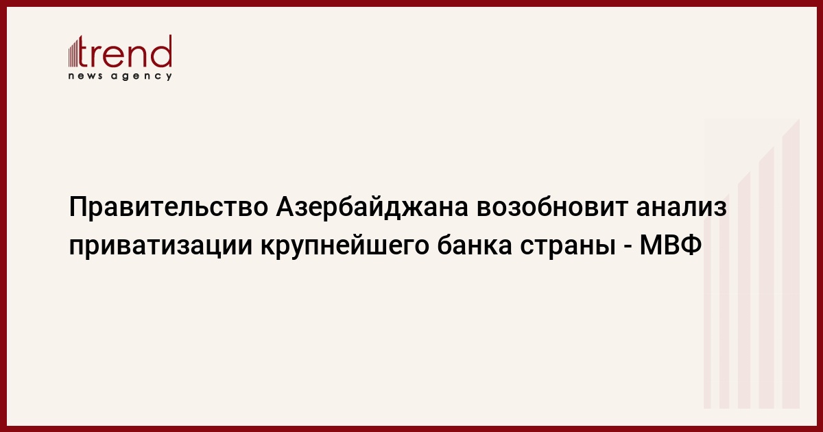 Правительство Азербайджана возобновит анализ процесса приватизации крупнейшего банка страны - Международного банка Азербайджана (МБА) через один-два месяца.