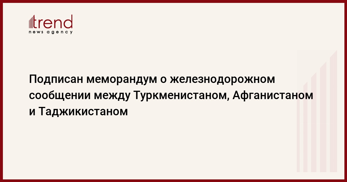 По итогам встречи достигнуты соответствующие договоренности и подписан важный документ - Меморандум о взаимопонимании между Туркменистаном, Исламской Республикой Афганистан и Республикой Таджикистан по строительству железной дороги "Туркменистан-Афганистан-Таджикистан".