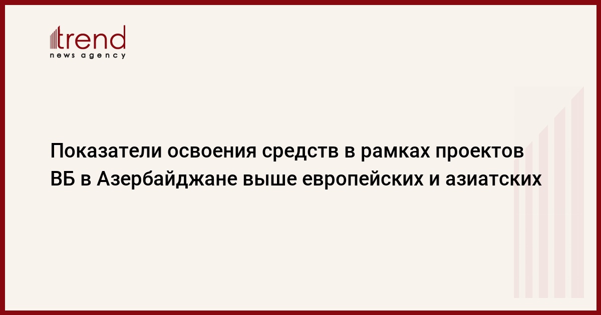 Показатель освоения средств в рамках проектов Всемирного банка (ВБ) в Азербайджане (19,2 процента) превышает аналогичный средний показатель в регионе Европы и Центральной Азии (17,3 процента) и общий средний показатель по банку (10,8 процента).