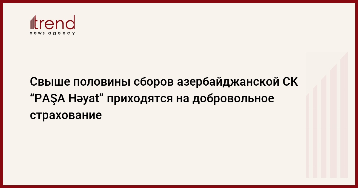 Азербайджанская компания по страхованию жизни "PAŞA Həyat", по итогам первого квартала 2013 года поднявшаяся на третье место по объему сборов в стране, 55 процентов своих премий обеспечивает за счет добровольного страхования.