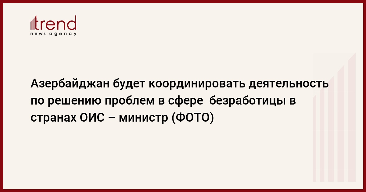 Азербайджан взял на себя обязательства по координации деятельности в сфере решения проблем с безработицей в течение двух ближайших лет в странах Организации исламского сотрудничества (ОИС), сказал во вторник журналистам министр труда и социальной защиты населения Азербайджана Физули Алекперов.