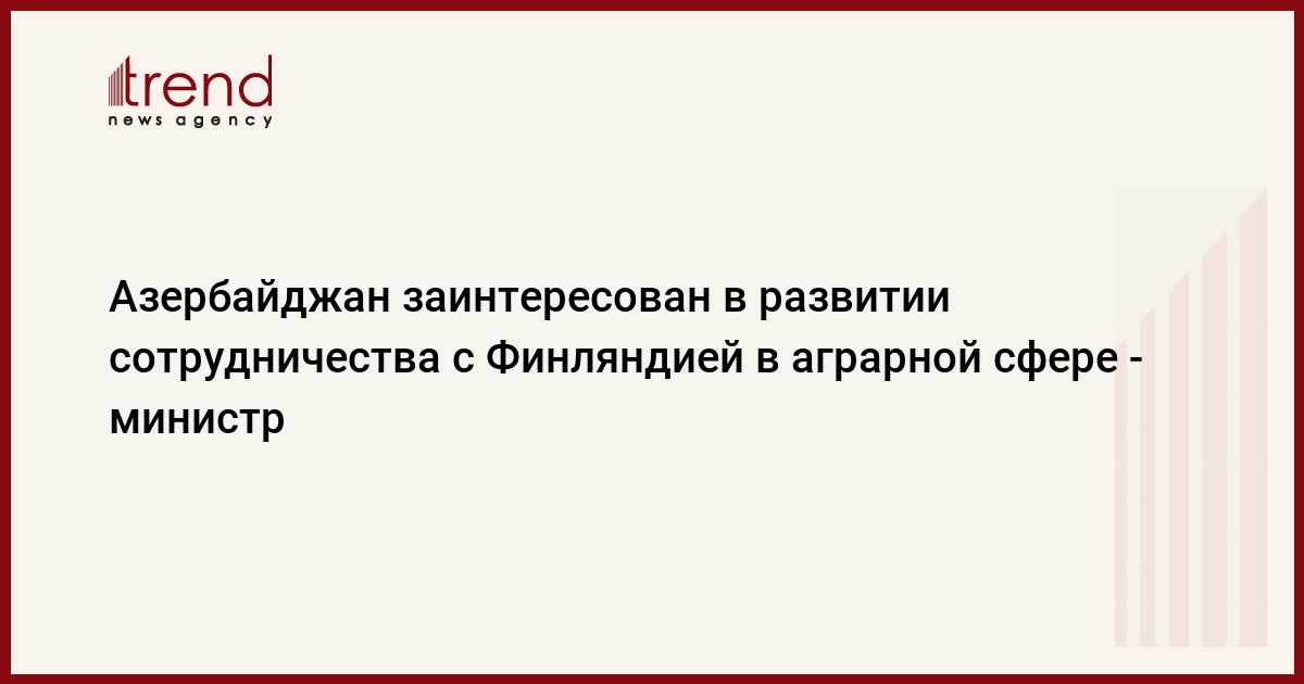 Министр сельского и лесного хозяйства Финляндии Яри Коскинен отметил, что экономические успехи Азербайджана и превращение страны в лидера региона вызывают серьезный интерес в финских деловых кругах, а также поинтересовался инвестиционными возможностями сельского хозяйства Азербайджана.