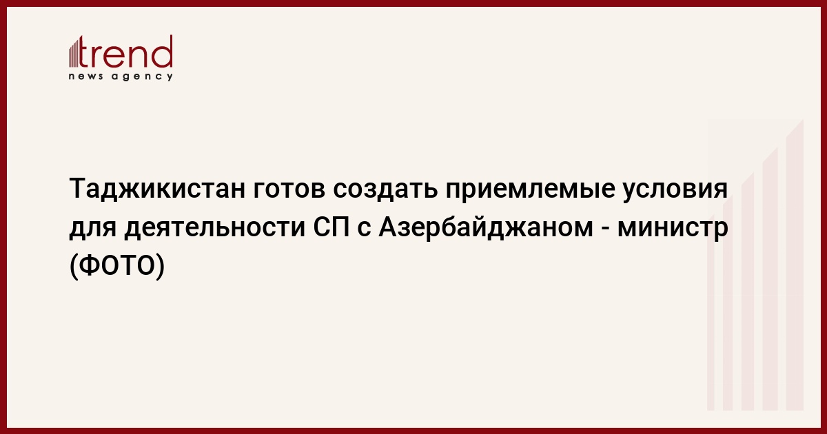 Таджикистан готов обеспечить условия для создания и дальнейшей деятельности на территории республики совместных азербайджано-таджикских предприятий.