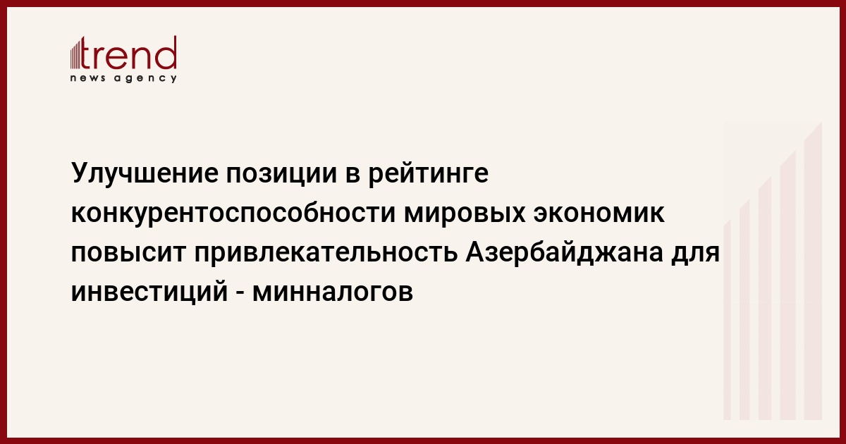 Улучшение позиции Азербайджана в рейтинге конкурентоспособности мировых экономик Всемирного экономического форума (ВЭФ) сделает страну более привлекательной для долгосрочных инвестиций, считает начальник Главного управления по налоговой политике и стратегическим исследованиям министерства по налогам страны Акиф Мусаев.
