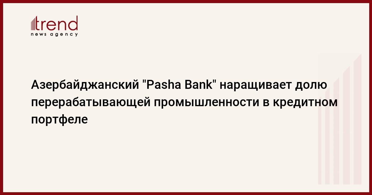 Кредитный портфель азербайджанского ОАО "Pasha Bank" вырос в первом полугодии на 17 процентов и достиг 331,69 миллиона манатов против 282,84 миллиона манатов на конец 2012 года.