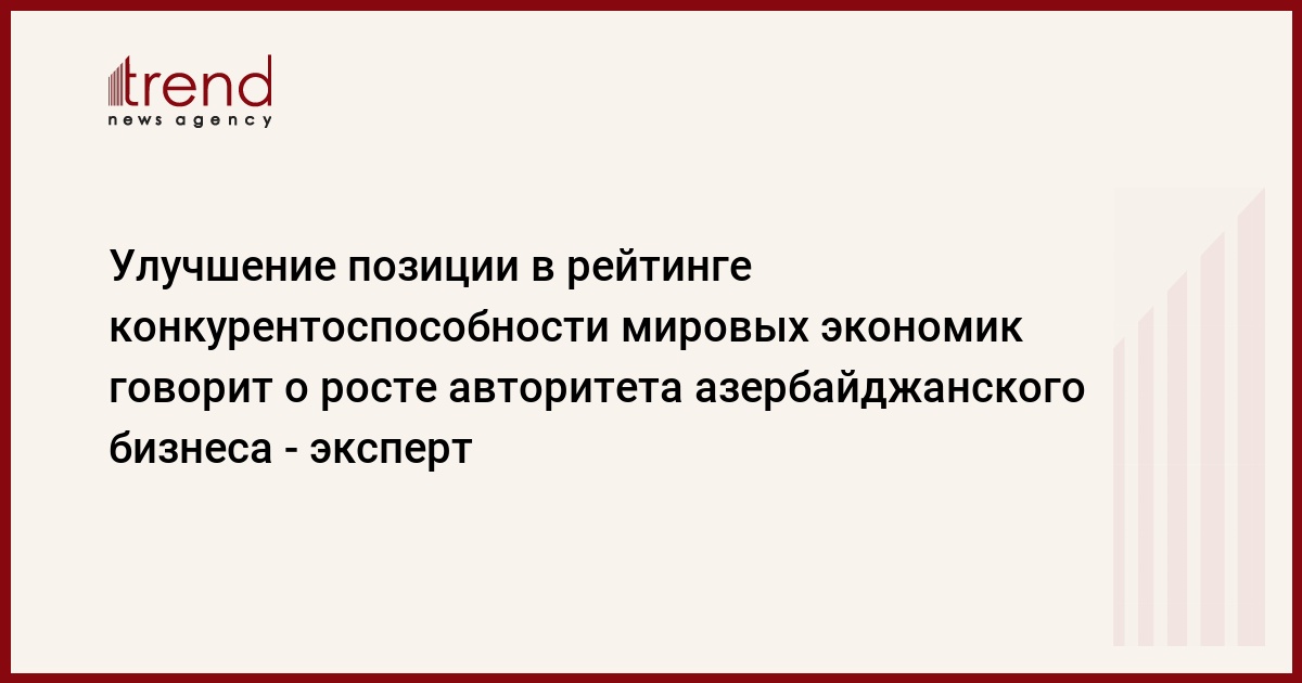 Улучшение позиции Азербайджана в рейтинге конкурентоспособности мировых экономик Всемирного экономического форума (ВЭФ) говорит о росте авторитета азербайджанского бизнеса. Об этом сказал Trend в понедельник председатель Общества маркетологов Азербайджана Рагим Гусейнов.