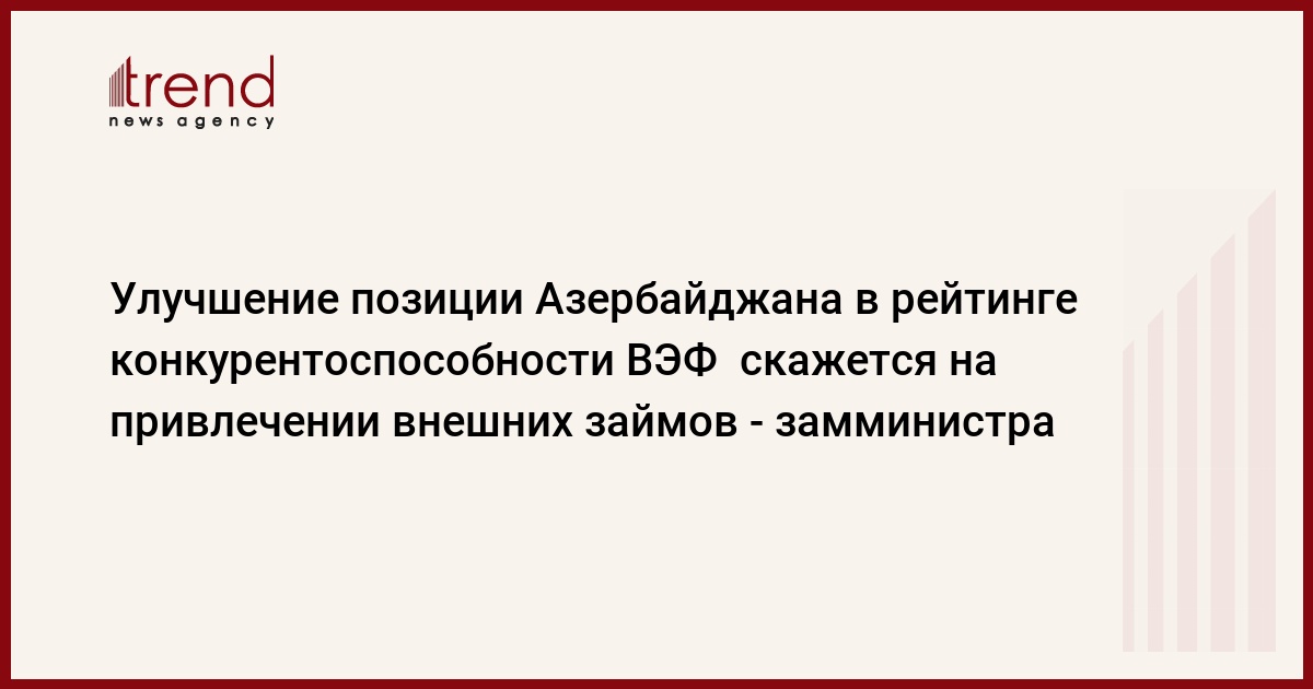 Улучшение позиции Азербайджана в рейтинге конкурентоспособности мировых экономик Всемирного экономического форума (ВЭФ) сыграет положительную роль в вопросах привлечения внешних заимствований.