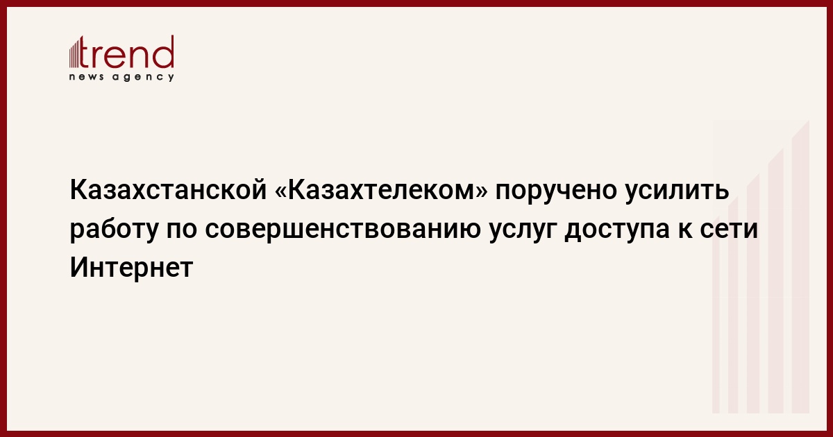 Правление ФНБ "Самрук-Қазына" поручило АО "Казахтелеком" усилить работу по совершенствованию услуг доступа к сети Интернет, говорится в сообщении департамента по связям с общественностью АО "Самрук-Қазына".