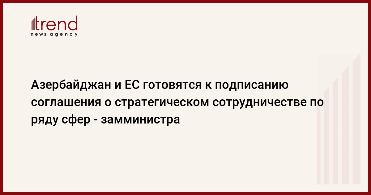 В ходе саммита "Восточного партнерства", которое состоится 29-30 ноября этого года в Вильнюсе, Азербайджан и Европейский союз (ЕС) могут подписать соглашение о стратегическом сотрудничестве по ряду сфер. Об этом сказал в среду журналистам заместитель министра иностранных дел Азербайджана Махмуд Мамедгулиев.