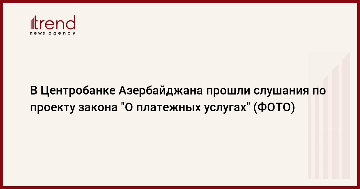 В Центральном банке Азербайджана (ЦБА) прошли слушания по проекту закона "О платежных услугах" с представителями банковского сектора страны. Об этом говорится в сообщении ЦБА, распространенном в четверг.