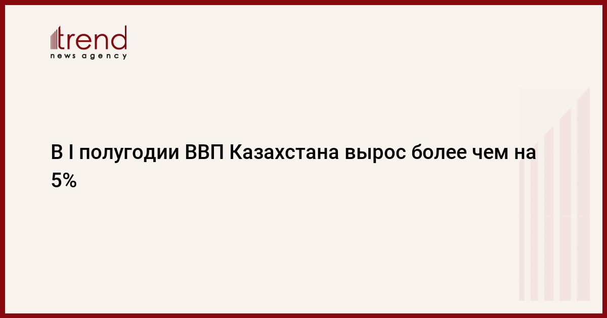ВВП Казахстана в первом полугодии 2013 года вырос на 5,1 процента по сравнению с аналогичным периодом прошлого года, сообщает Агентство по статистике Казахстана.