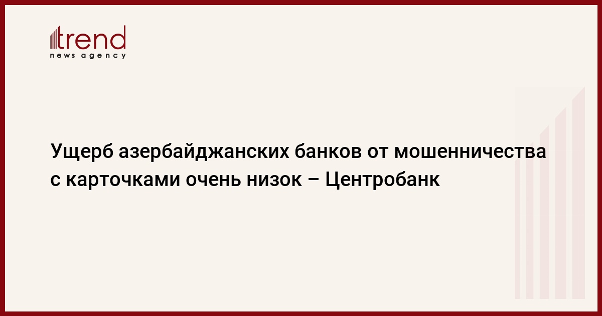 Центральный банк Азербайджана (ЦБА) оценивает ущерб, нанесенный местным банкам от мошенничества с пластиковыми картами, как очень низкий.
