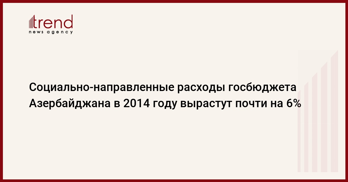 Согласно прогнозам государственного бюджета Азербайджана на 2014 год, доля социально-направленных затрат в структуре расходов госбюджета по сравнению с 2013 годом, увеличится на 1,3 процентных пункта - до 26,6 процента.