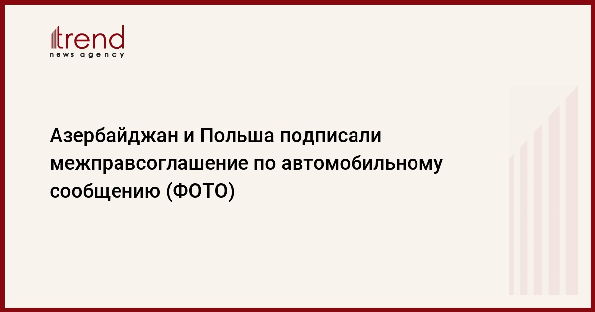 В четверг в Баку между министерствами транспорта Азербайджана и Польши состоялось подписание межправительственного соглашения по сотрудничеству в сфере международного автомобильного сообщения.