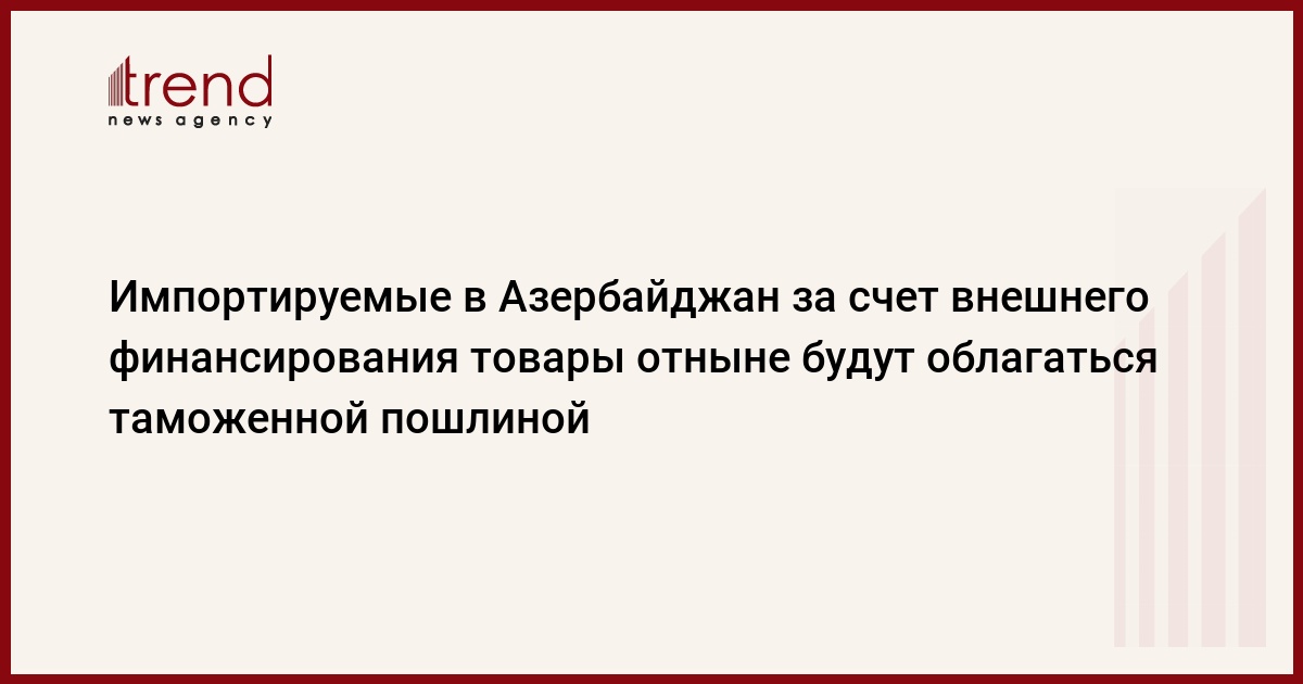 Азербайджан отменил освобождения от таможенной пошлины по отношению к товарам, импортируемым за счет внешнего финансирования. Эти освобождения действовали с 22 апреля 1998 года, и до 19 декабря 2013 года будет завершен срок их действия.
