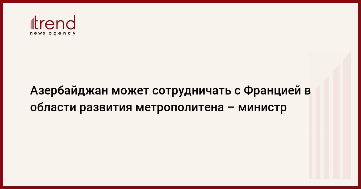 "Как известно, был принят план развития Большого Баку, определяющий направления развития города в будущем. Одним из таких важнейших направлений является развитие метрополитена. Существует схема развития бакинского метро, и мы думаем, что имеется потенциал для сотрудничества с французскими компаниями в этой сфере. Развитие метро - это не только прокладка новых линий и строительство станций. Считаю, что французские партнеры смогут сотрудничать с Азербайджаном в этой сфере и с точки зрения поставок технологического оборудования для метрополитена, а также обновления парка электропоездов", - сказал Шарифов.