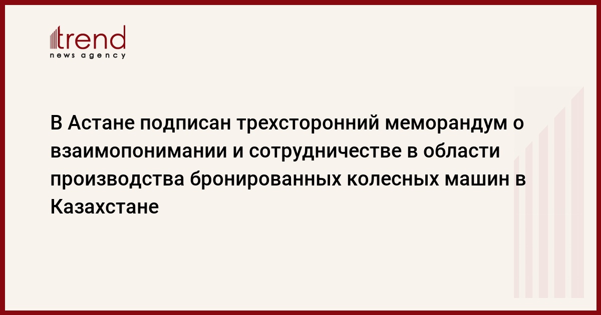 В Астане был подписан трехсторонний меморандум о взаимопонимании и сотрудничестве в области производства боевых колесных машин и их технического обслуживания в Казахстане, сообщает пресс- служба АО "НК "Казахстан инжиниринг".