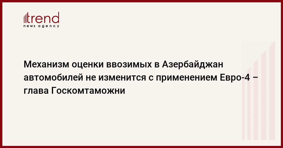 Применение в Азербайджане экологического стандарта Евро-4 непосредственно не влияет на договорную стоимость автомобилей, и нет необходимости в пересмотре механизма таможенной оценки автотранспортных средств. Об этом сказал Trend в пятницу председатель Государственного таможенного комитета (ГТК) Азербайджана, генерал-лейтенант таможенной службы Айдын Алиев.