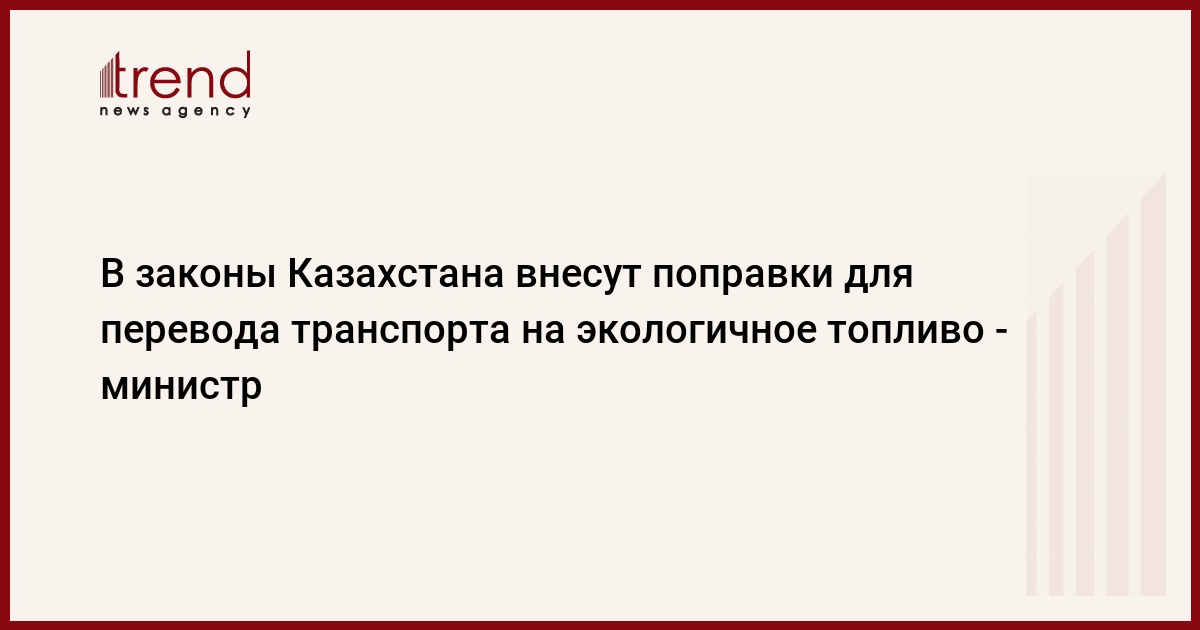В Казахстане для перевода транспортных средств на экологичные виды топлива планируется внести поправки в законодательство страны. Об этом сообщил министр окружающей среды и водных ресурсов Казахстана Нурлан Каппаров, выступая во вторник на брифинге в Службе центральных коммуникаций при президенте страны.