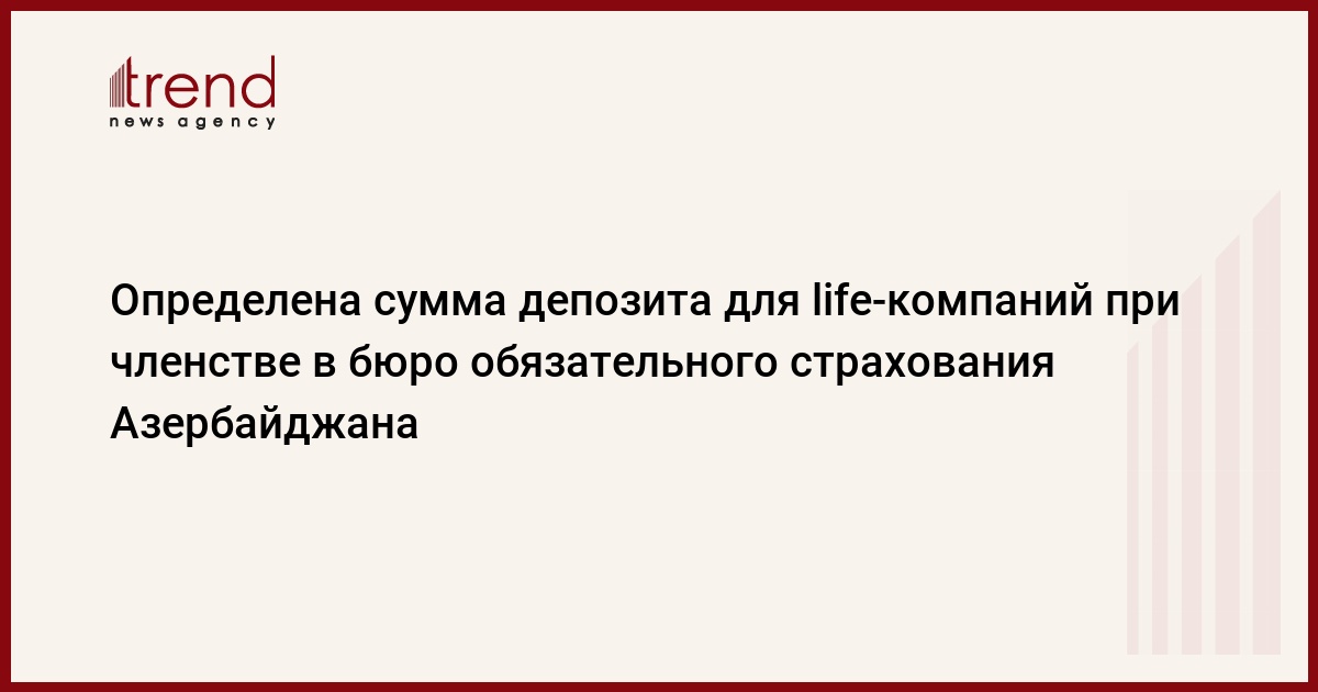 Взносы по депозиту обеспечения по четырем видам, регулируемым новым законом, определены на уровне 200 тысяч манатов для ОСАГО, 200 тысяч манатов - для страхования пассажиров, 100 тысяч манатов - страхования имущества и 100 тысяч манатов - для страхования гражданской ответственности при эксплуатации недвижимого имущества.