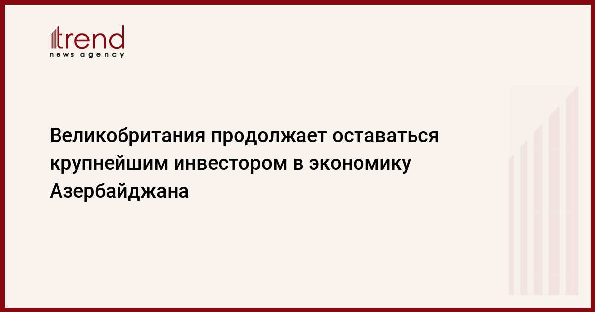 Великобритания продолжает сохранять лидирующие позиции: ее удельный вес в общем объеме зарубежных инвестиций в Азербайджан составил 34,7 процента, а размер самих инвестиций - 75,09 миллиарда манатов.