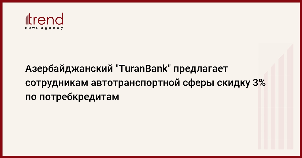 ОАО "TuranBank" объявляет трехпроцентную скидку по потребительским кредитам для сотрудников ОАО "Азерйолсервис" министерства транспорта Азербайджана.