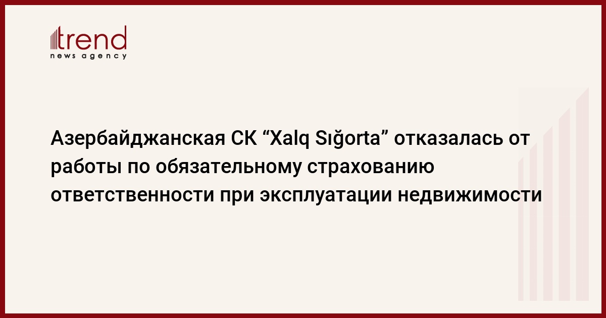 Азербайджанская страховая компания ОАО "Xalq Sığorta" по собственному желанию отказалась от права работать по виду обязательного страхования ответственности при эксплуатации недвижимости.