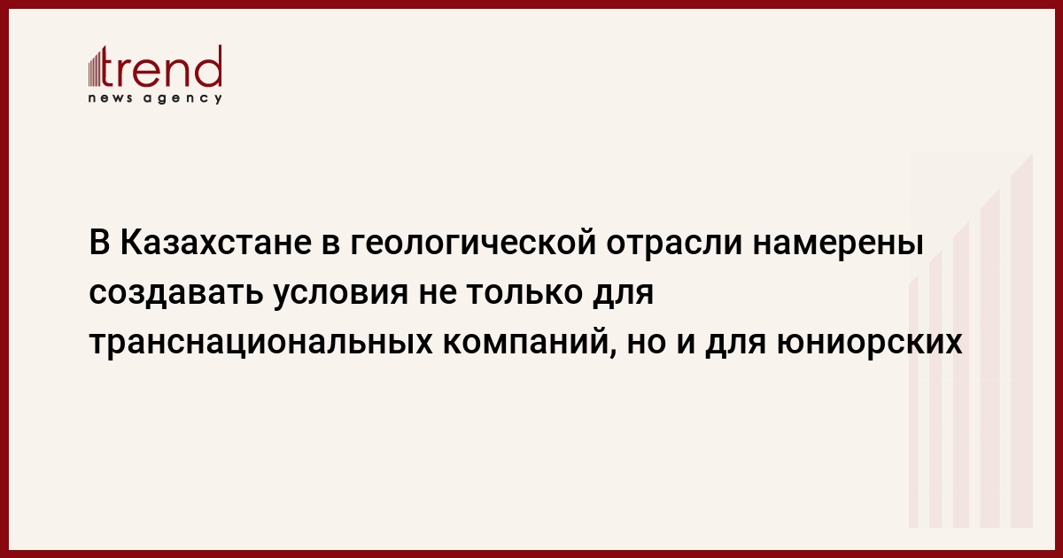 В Казахстане в геологической отрасли намерены создавать условия не только для транснациональных компаний, но и для юниорских (малых) компаний, сообщили Trend в Комитете геологии министерства индустрии и новых технологий РК, отвечая на официальный запрос агентства.