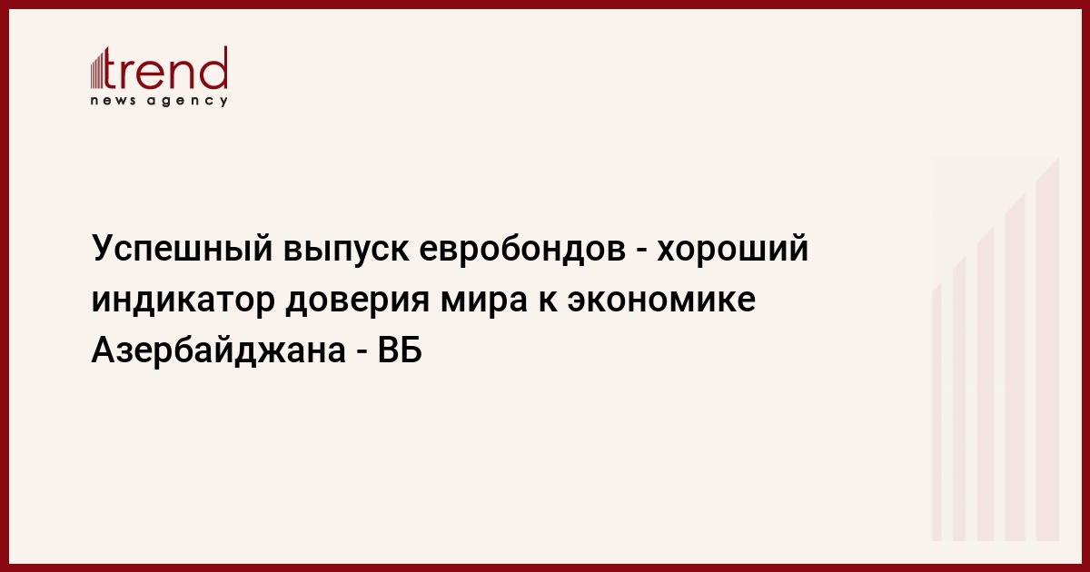 Успешный выпуск суверенных евробондов правительства Азербайджана является хорошим индикатором доверия мира к экономике Азербайджана, считает региональный директор Всемирного банка (ВБ) по Южному Кавказу Генри Керали.