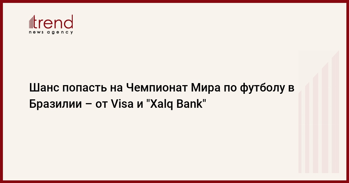 Международная платежная система Visa и ОАО "Xalq Bank" приступают к реализации совместной кампании для владельцев пластиковых карт Visa - "Оплати картой Visa, получи шанс попасть на Чемпионат Мира по футболу 2014 года в Бразилии".