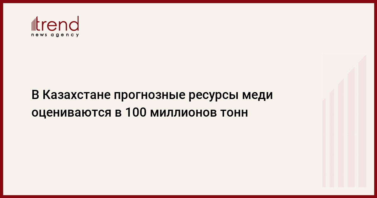 "В Казахстане прогнозные ресурсы меди оцениваются в 100 миллионов тонн. Они, в основном, сосредоточены в Центральном, Восточном и Западном Казахстане", - сказал Нурабаев, выступая на совещании на тему "Состояние сырьевой базы цветных металлов (медь, свинец, цинк, алюминий), направление и пути развития геологоразведочных работ на цветные металлы в Казахстане".