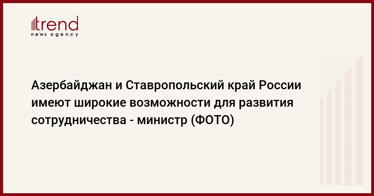 По словам Мустафаева, Азербайджан успешно сотрудничает и субъектами РФ, в том числе со Ставропольским краем. В 2013 году товарооборот между Россией и Азербайджаном в целом вырос на 10 процентов, а в частности со Ставропольским краем - почти на 60 процентов. Несмотря на это, существуют широкие возможности для дальнейшего развития взаимного сотрудничества, и Азербайджан заинтересован в этом, отметил министр.