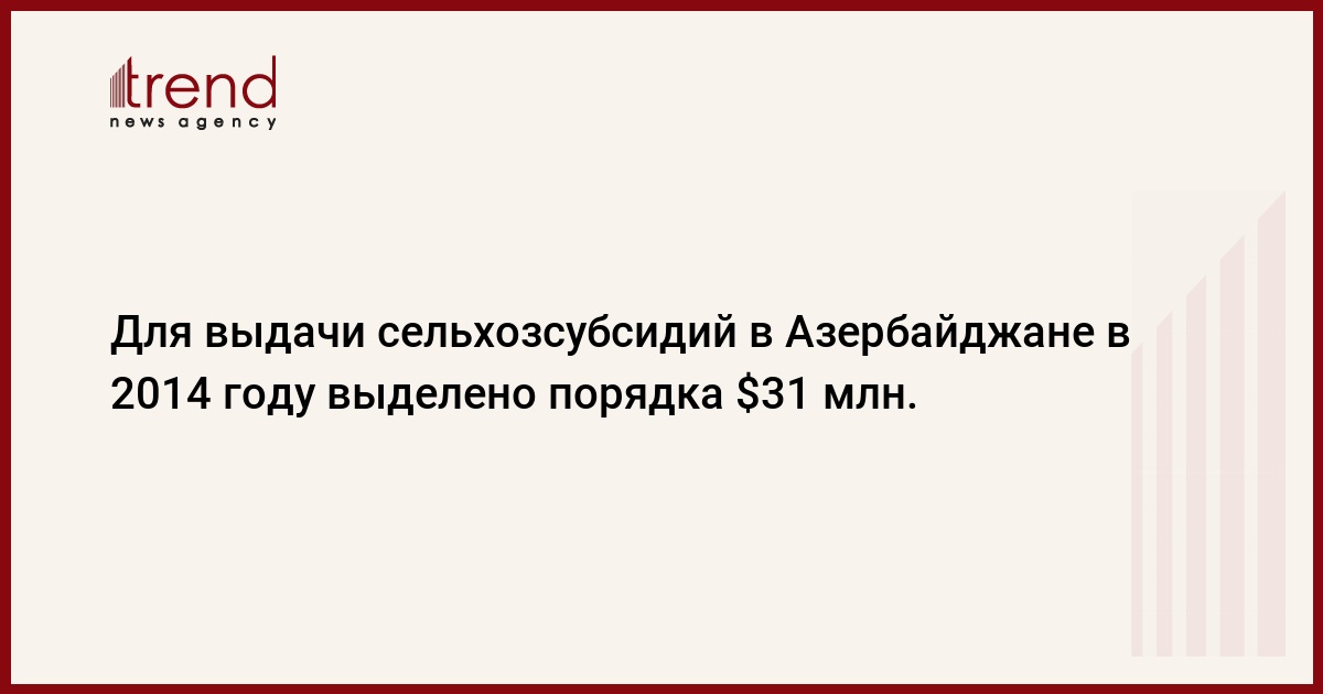 Республиканская комиссия по выдаче субсидий сельхозпроизводителям в Азербайджане приняла решение о выделении из государственного бюджета 20,15 миллиона манатов, говорится в сообщении министерства сельского хозяйства, распространенном в пятницу.