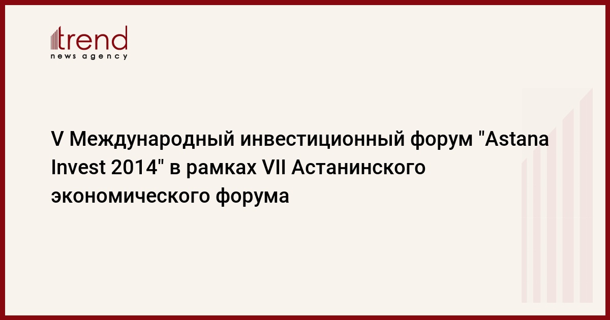 21 мая 2014 года в Астане во Дворце независимости пройдет V Международный инвестиционный форум "Astana Invest 2014" в рамках VII Астанинского экономического форума.