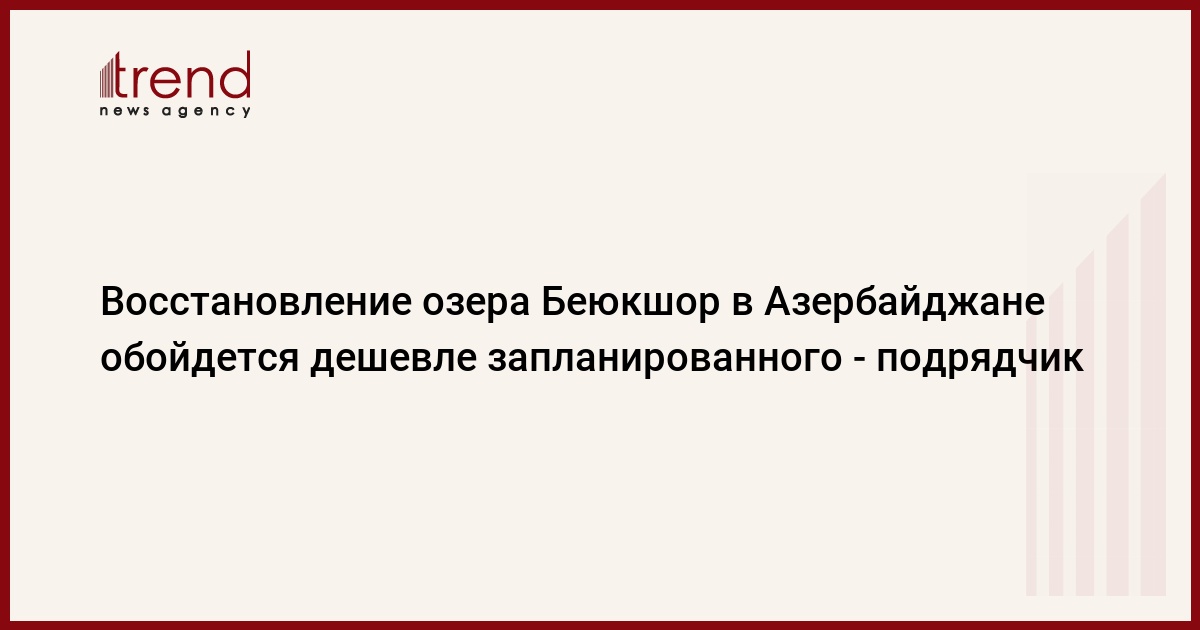Работы по реабилитации абшеронского озера Беюкшор могут обойтись дешевле, чем планировалось. Об этом сказал Trend в понедельник председатель правления ОАО "Təmiz Şəhər" - подрядчик проекта, Закир Ибрагимов.