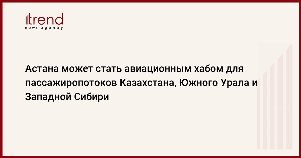 Астана может стать авиационным хабом для пассажиропотоков Казахстана, Южного Урала и Западной Сибири, сказал член коллегии (министр) по энергетике и инфраструктуре Евразийской экономической комиссии (ЕЭК) Даниал Ахметов, выступая на девятой Международной конференции по транзитно-транспортному потенциалу "ТрансЕвразия-2014".