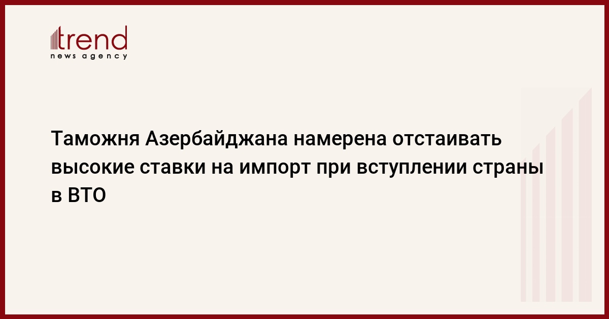 Азербайджанская таможня намерена отстаивать сохранение высоких ставок на импорт различных товаров при вступлении страны во Всемирную торговую организацию (ВТО).
