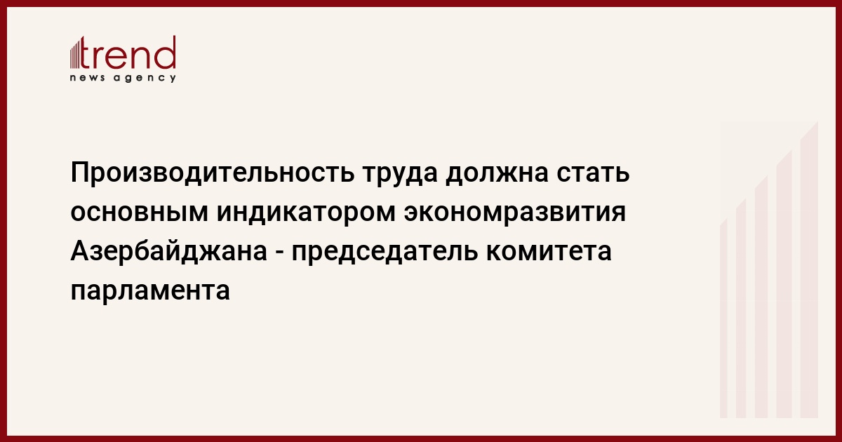 БАКУ /Trend/ - Производительность труда должна стать основным индикатором экономического развития Азербайджана.
