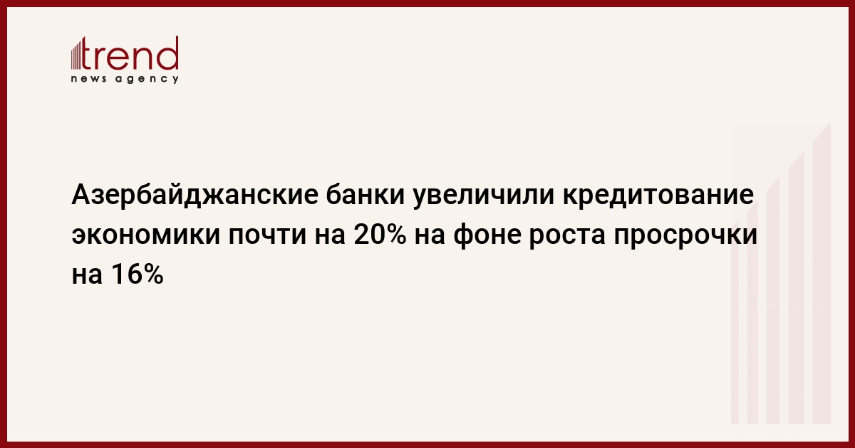 БАКУ /Trend/ - Банки Азербайджана в январе-июле 2014 года по сравнению с аналогичным периодом прошлого года увеличили кредитование экономики на 19,96 процента.