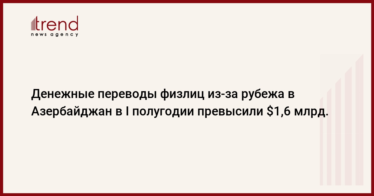 Денежные переводы физлиц из-за рубежа в Азербайджан в I полугодии превысили $1,6 млрд.