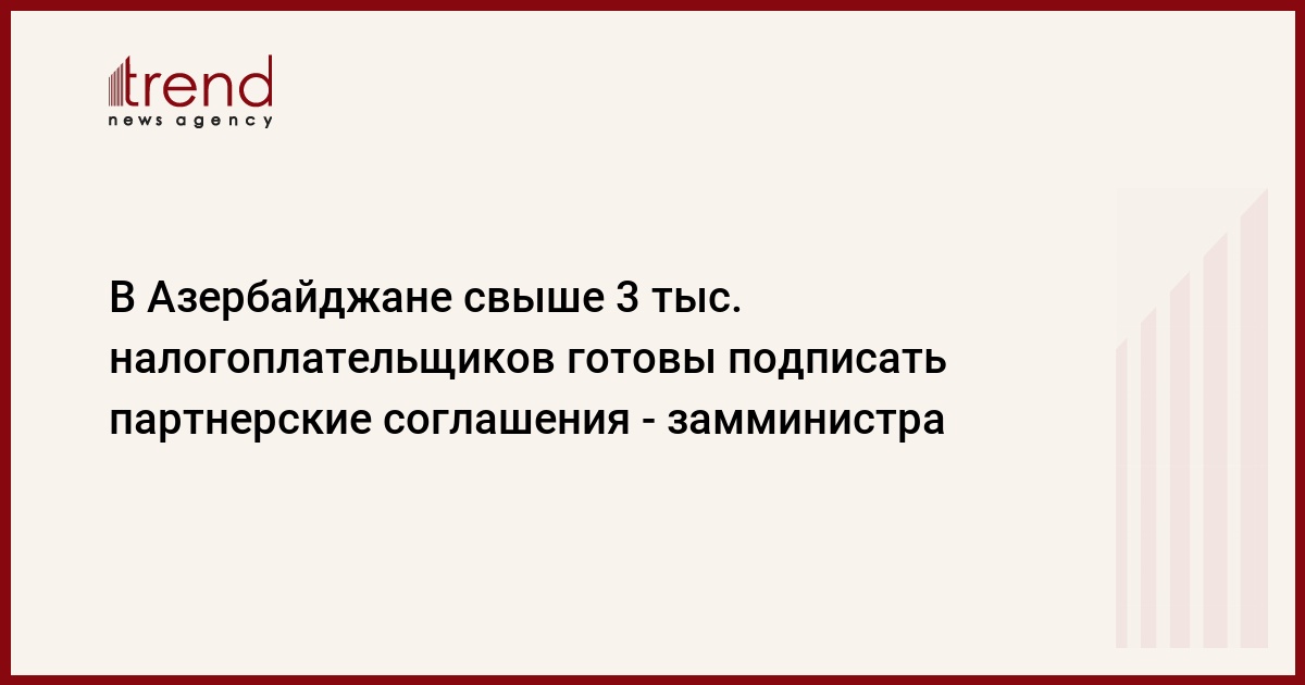 БАКУ /Trend/ - До сегодняшнего дня в Азербайджане более трех тысяч налогоплательщиков изъявили желание подписать партнерские соглашения с налоговыми органами страны. Партнерские соглашения уже заключены с 80 процентами из них.
