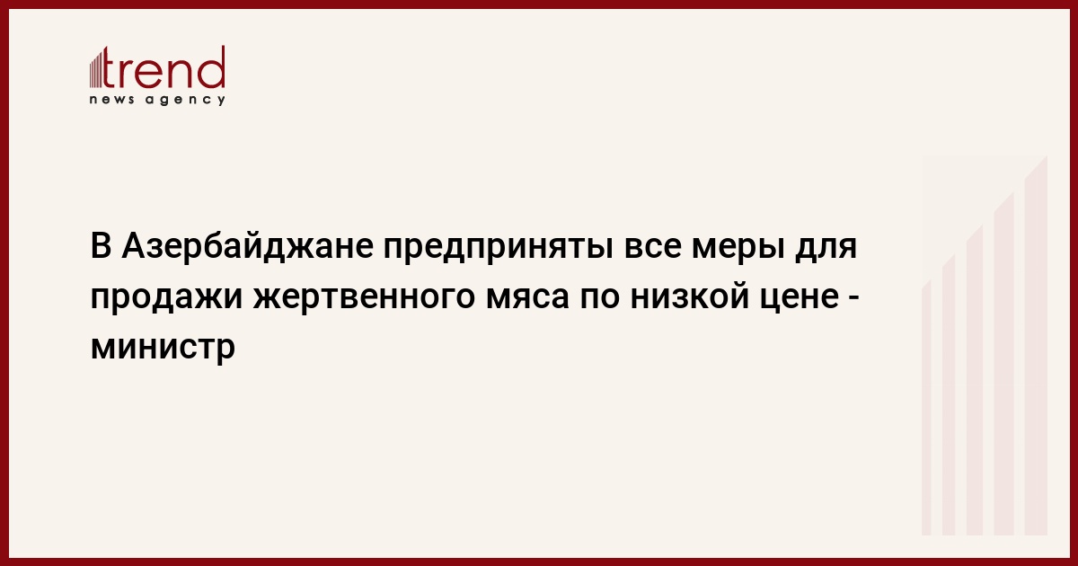 БАКУ /Trend/ - В Азербайджане осуществлены все необходимые меры, чтобы обеспечить продажу жертвенного мяса по низкой цене. Об этом в среду журналистам сказал министр сельского хозяйства Гейдар Асадов.